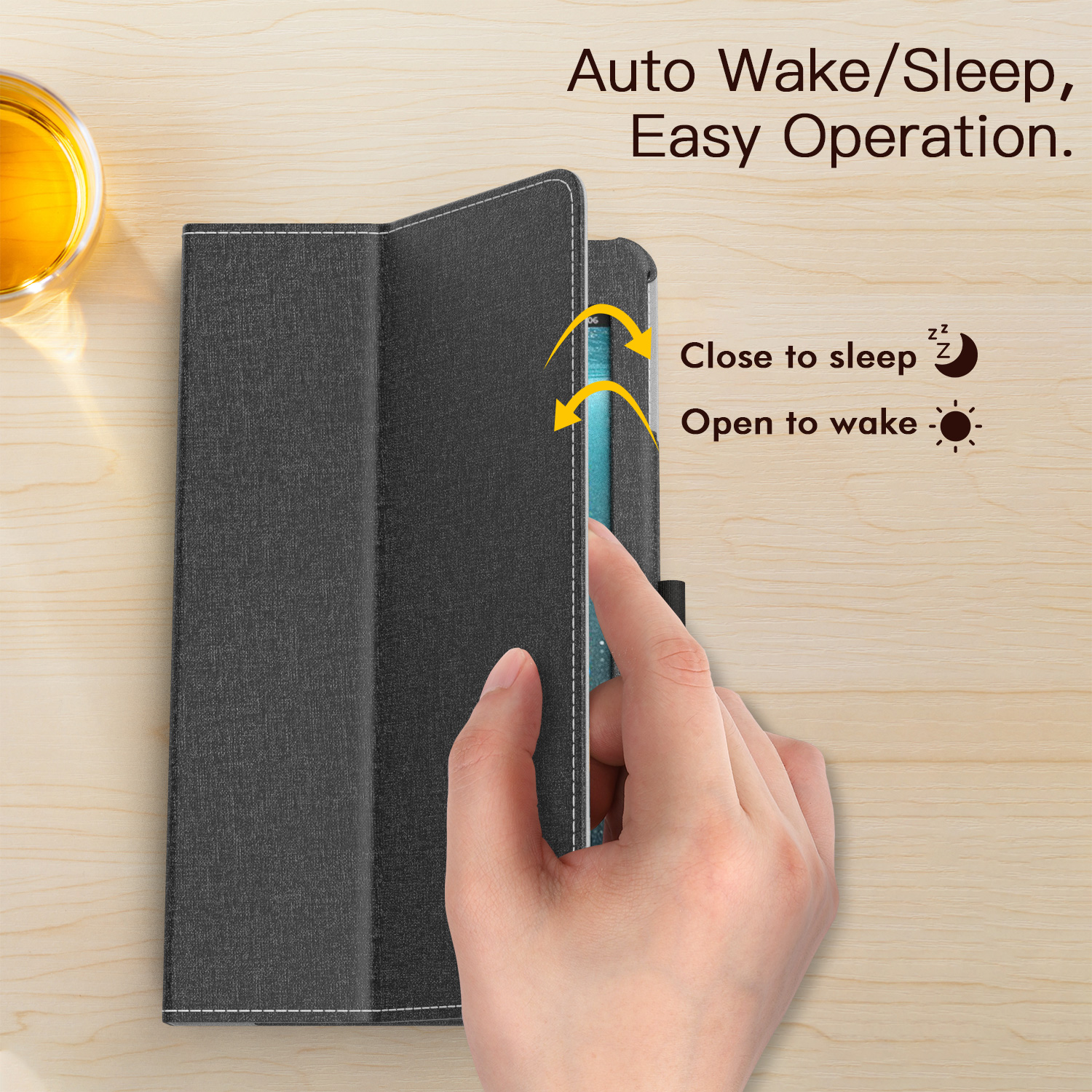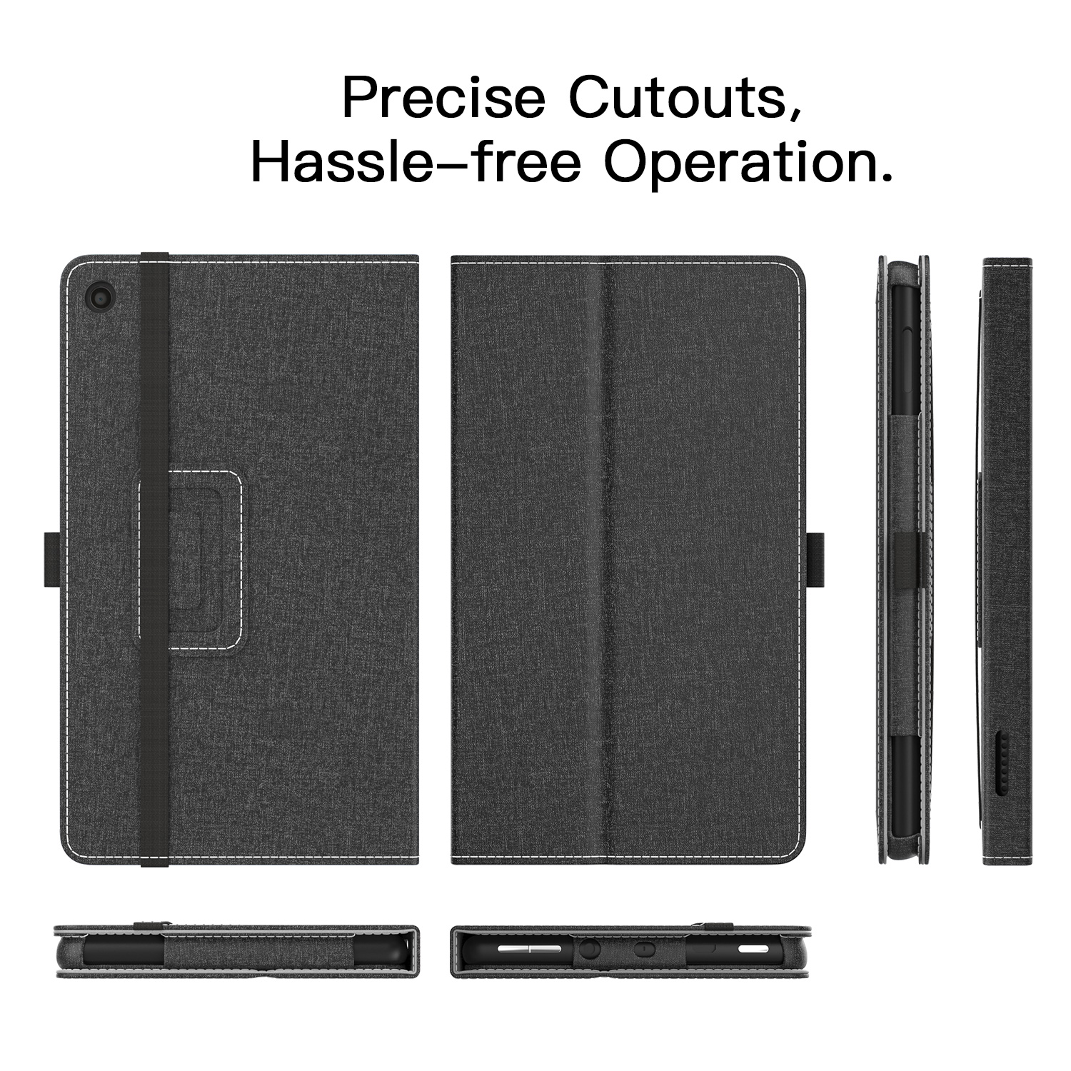 Dadanism Folio Case Fits All-New Amazon Kindle Fire 7 Tablet (9th Generation, 2019 Release only), Premium Fabric Lightweight Slim Shockproof Smart Stand Cover with Auto Wake/Sleep – Denim Black