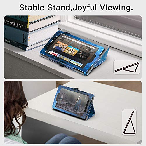 Dadanism Folio Case Fits All-New Amazon Kindle Fire 7 Tablet (9th Generation, 2019 Release Only), Premium PU Leather Lightweight Slim Shockproof Smart Stand Cover with Auto Wake/Sleep – Blue Sky Star