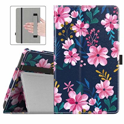 Dadanism Folio Case Fits All-New Amazon Kindle Fire 7 Tablet (9th Generation, 2019 Release), Premium PU Leather Lightweight Slim Shockproof Smart Stand Cover with Auto Wake/Sleep – Blue & Pink Flower