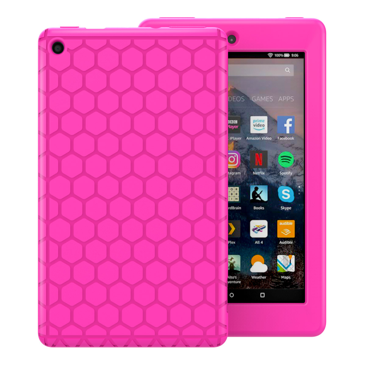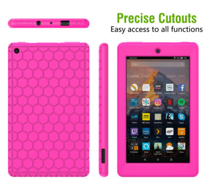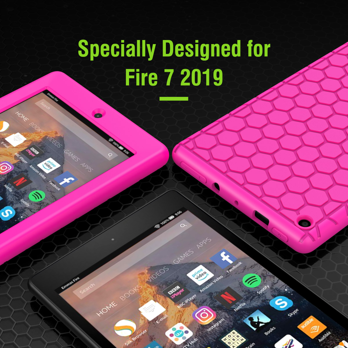 Dadanism Silicone Case Fits All-New Amazon Fire 7 Tablet (9th Generation, 2019 Release only), Heavy Duty Lightweight Shock Proof Kids Friendly Protective Back Cover, Corner Protection – Magenta